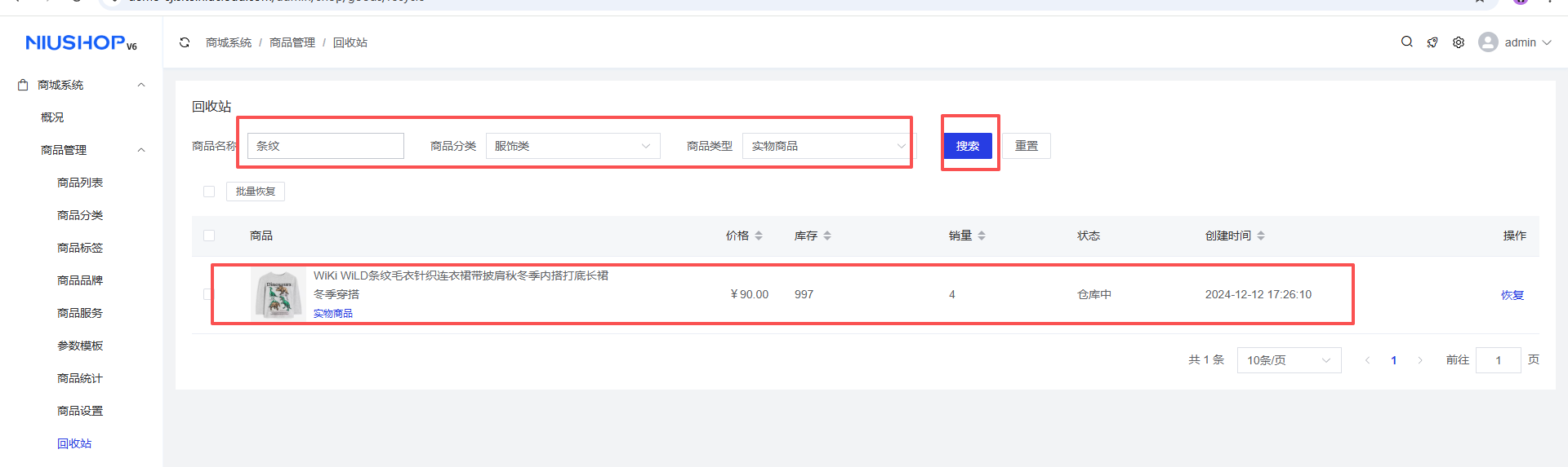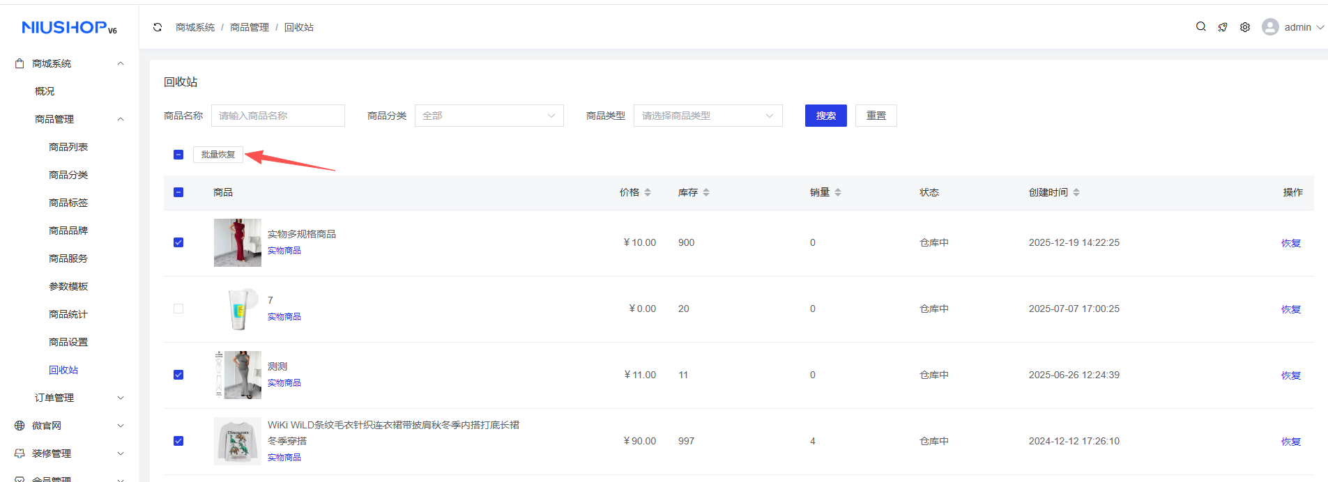 商城系统 > 商品管理 > 回收站