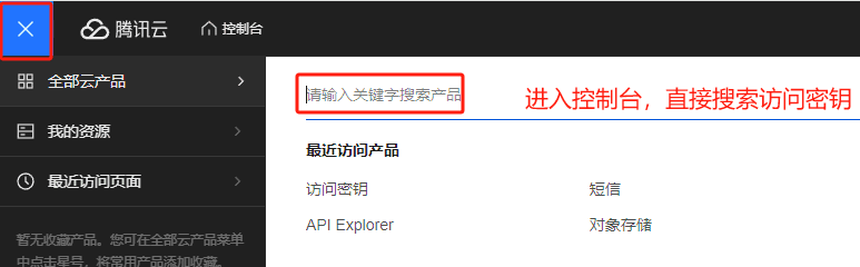 1.进入控制台,搜索访问密钥