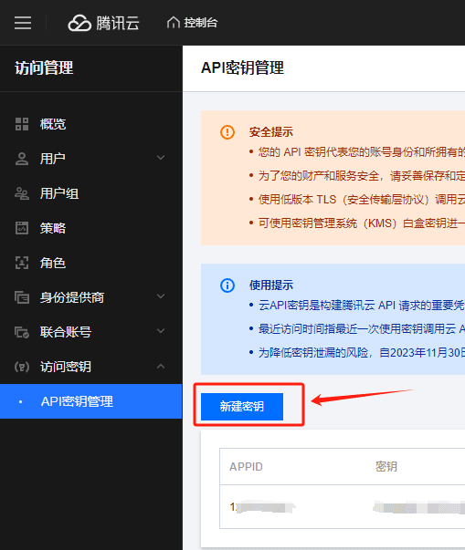 五、获取SECRET_ID,SECRET_KEY