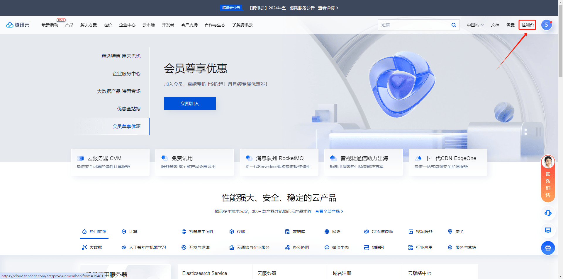 1.登录上腾讯云短信平台,点击控制台