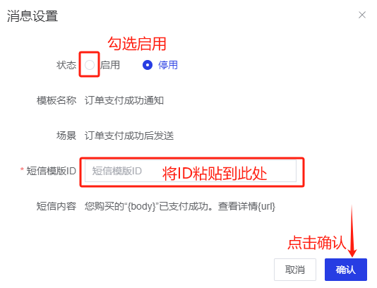 短信模版ID必须与腾讯云消息模板相一致。