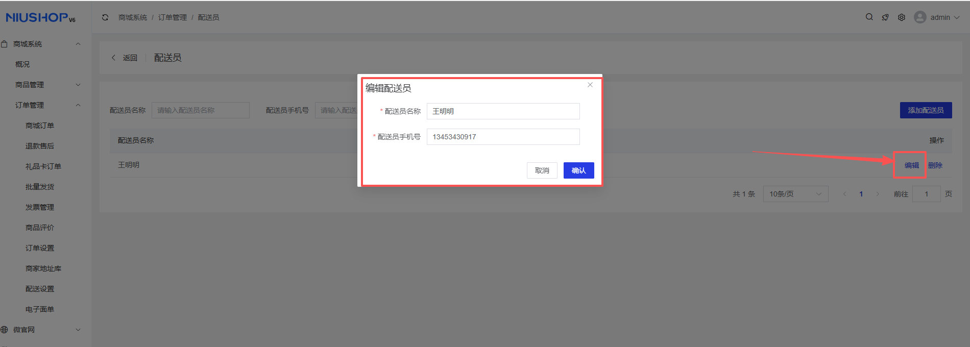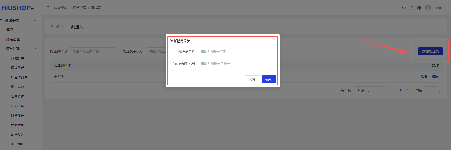 添加配送员信息,当订单为同城配送时,调用此处的配送员信息