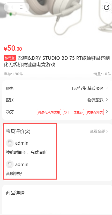 评价显示:开启后买家评价展示在商品页面,关闭则不展示评价