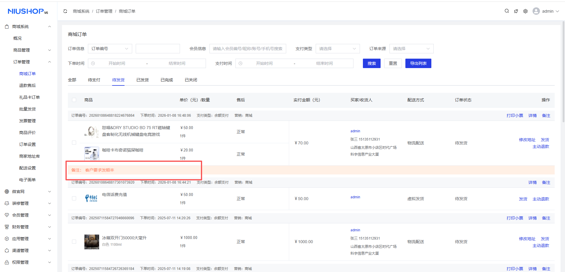 商城系统 > 订单管理 > 商城订单