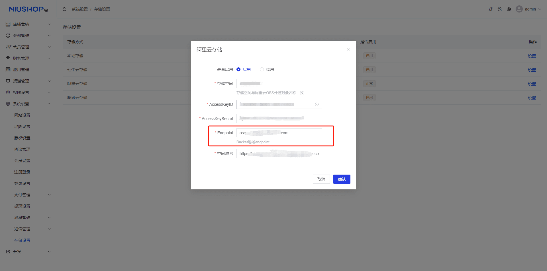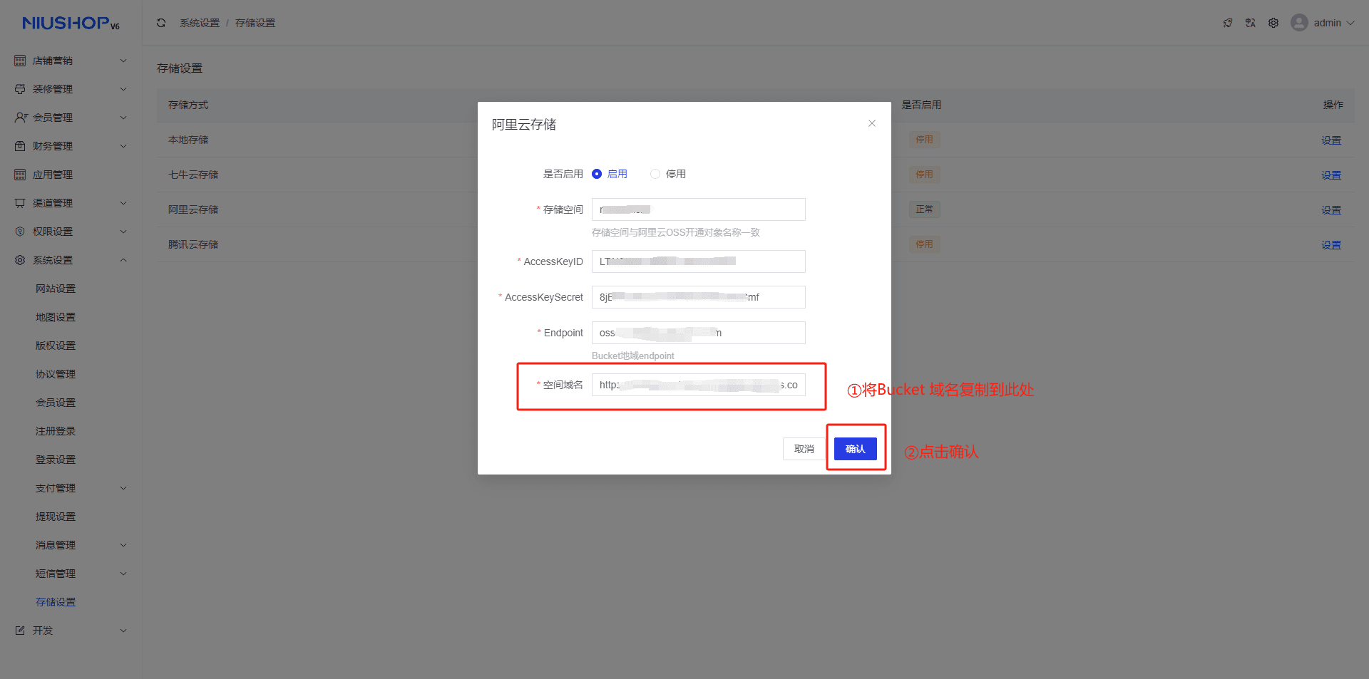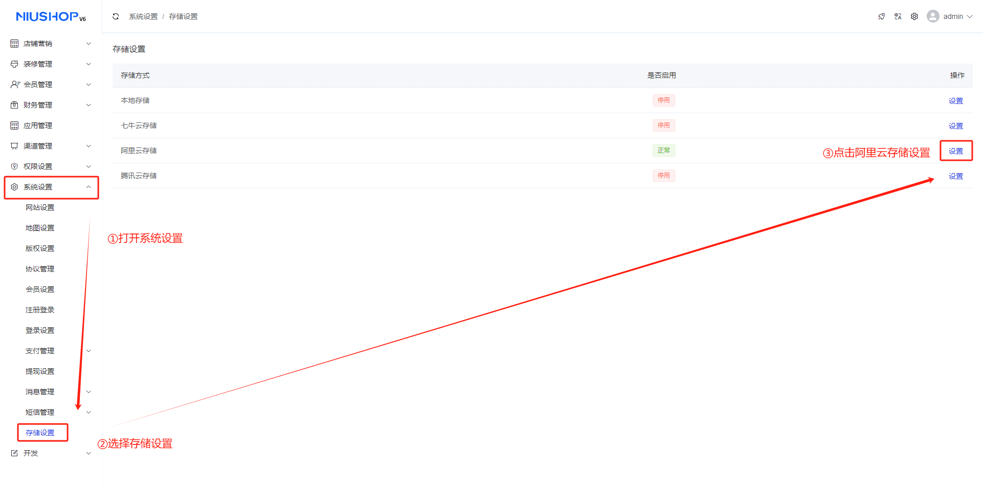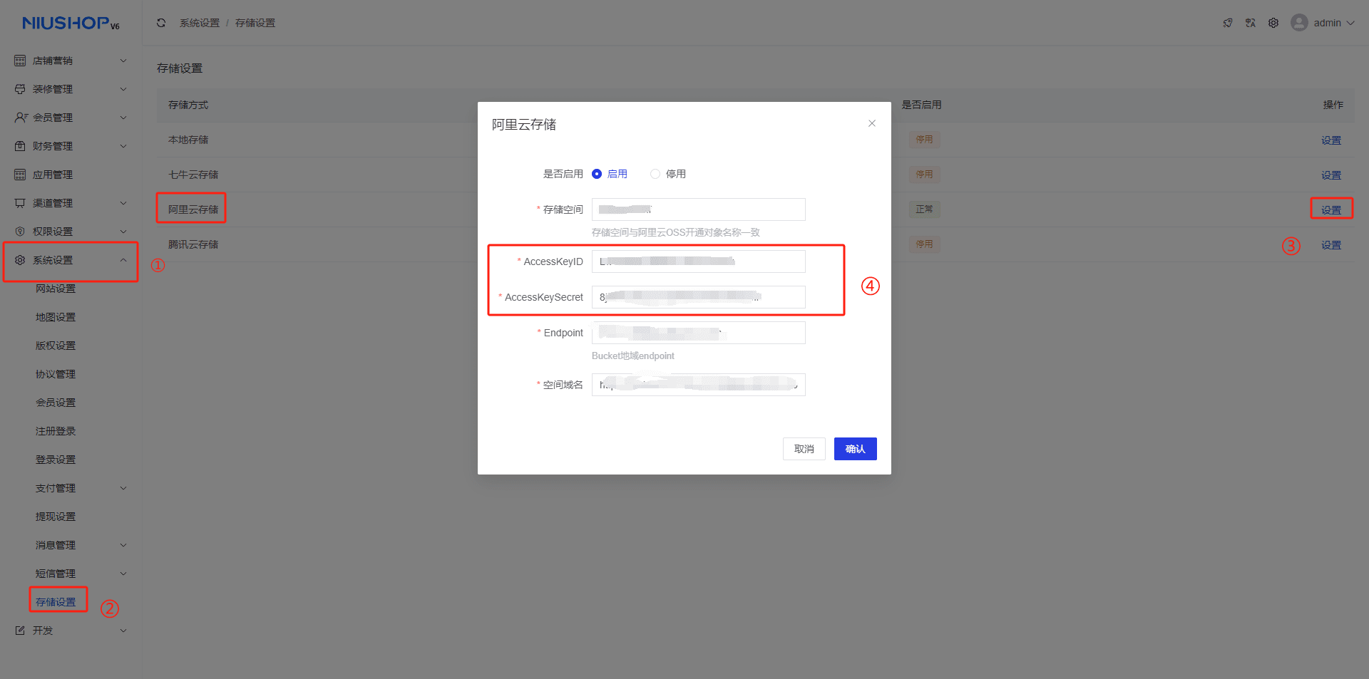 1.选择系统设置--存储设置--选择阿里云存储方式--单击设置