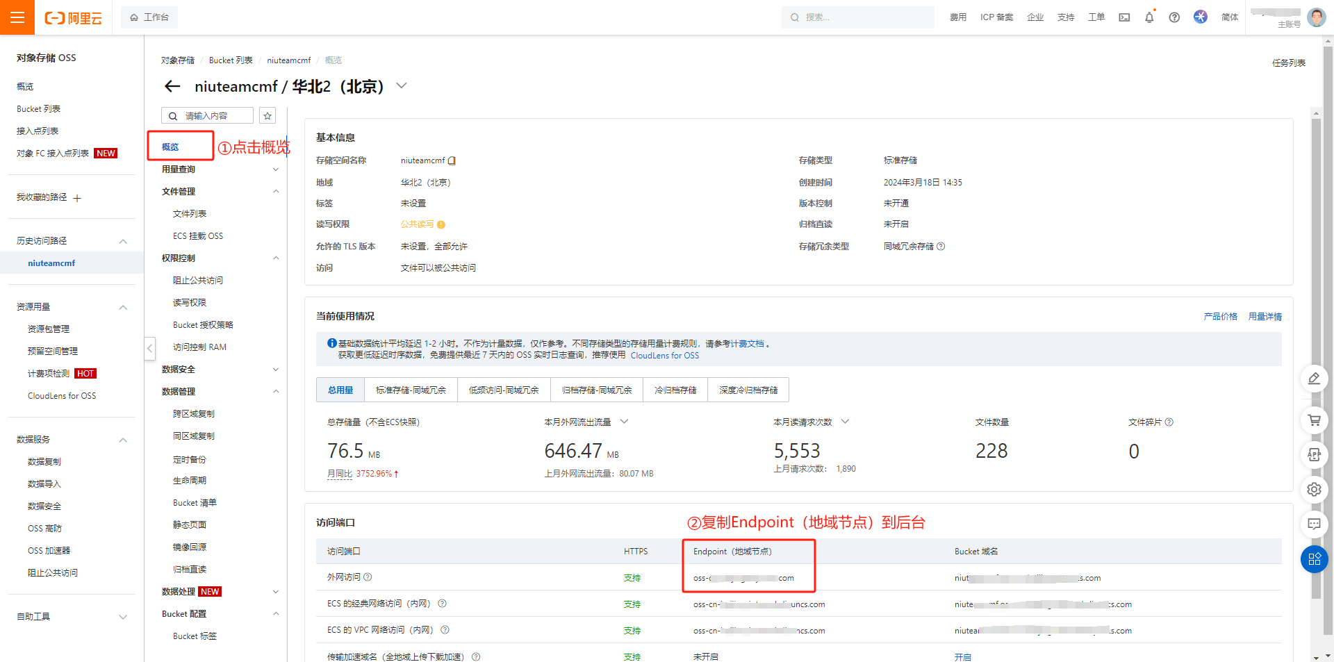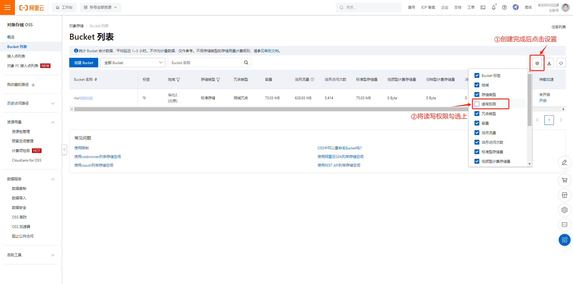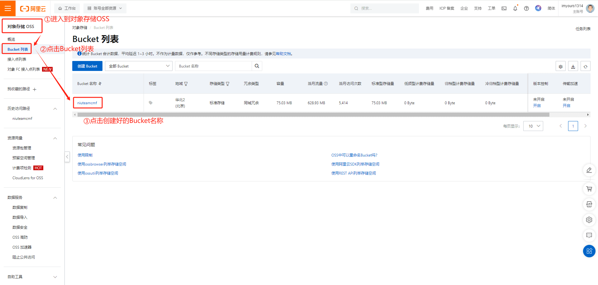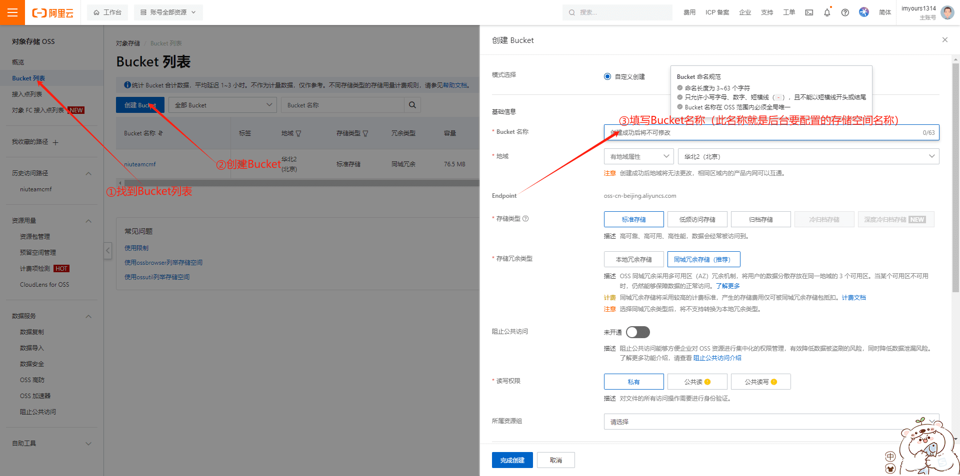 3.存储空间名称在Bucket列表获取,阿里云上创建一个Bucket