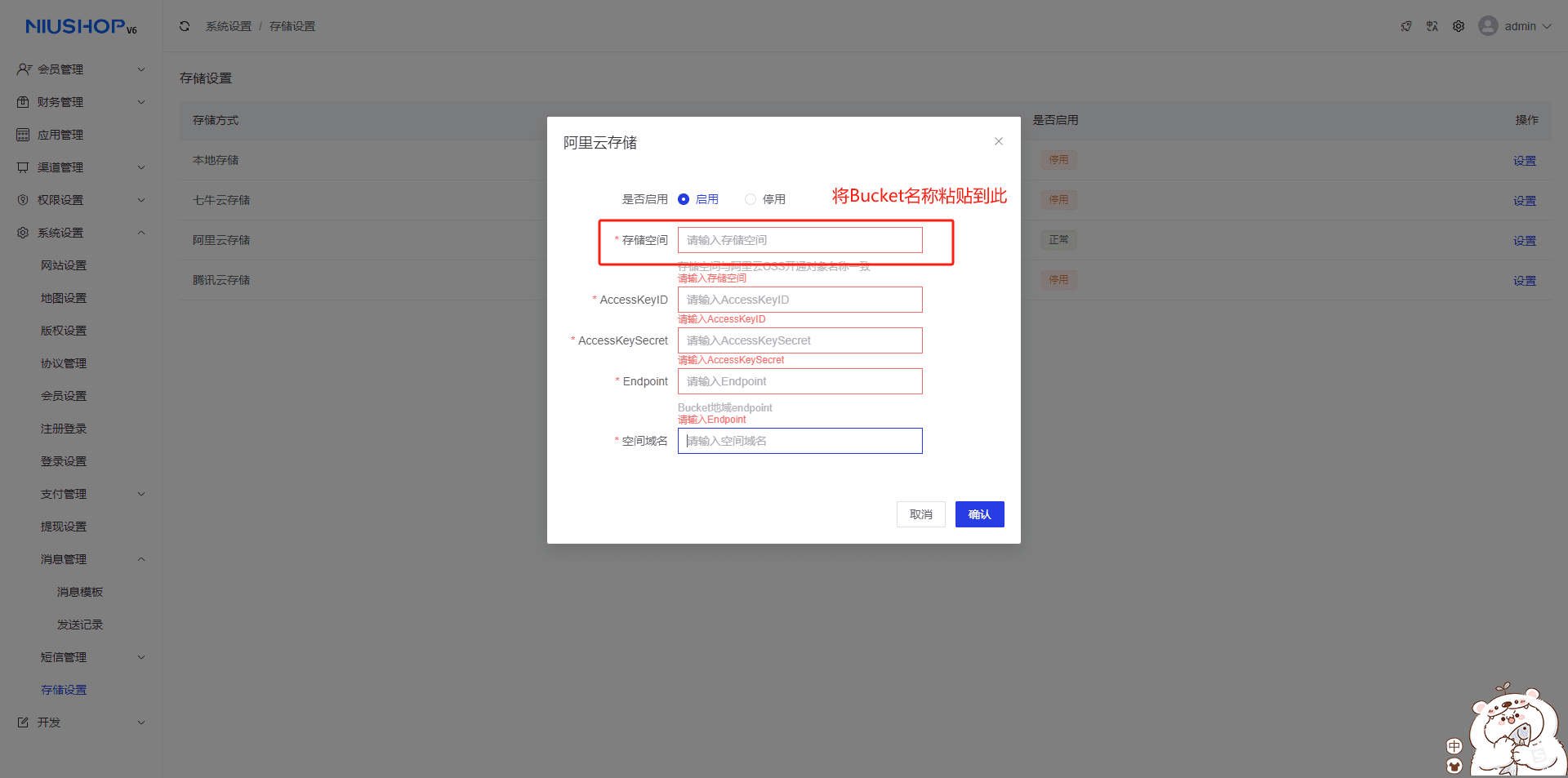 5.将创建好的Bucket名称粘贴到此处