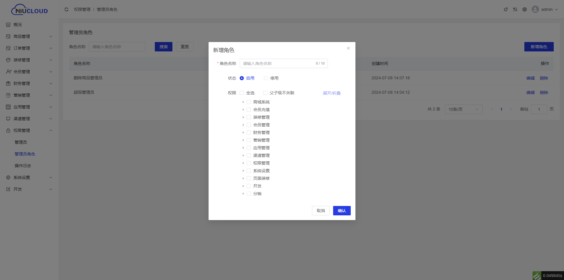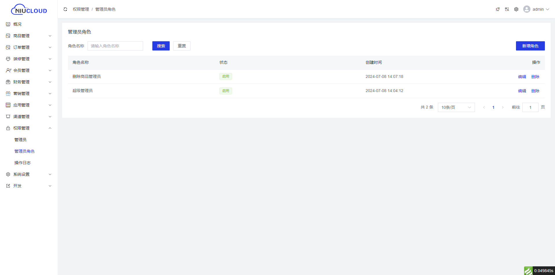 管理员角色中,控制各管理员的权限可以编辑角色也可以新增角色。