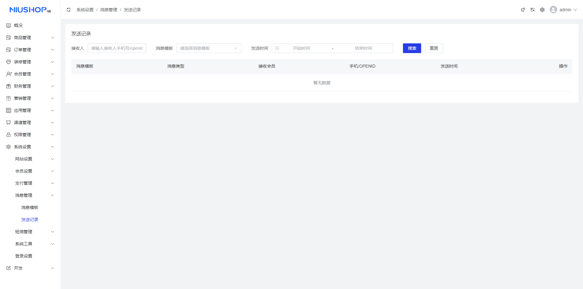 可根据接收人、消息模板、发送时间来筛选发送记录。