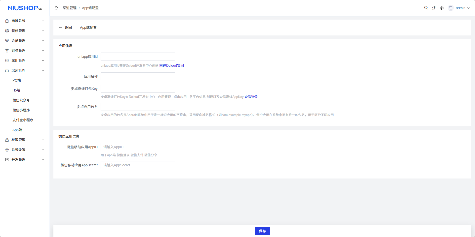 - 微信移动应用AppID:输入微信移动应用的AppID,用于微信登录和分享等功能